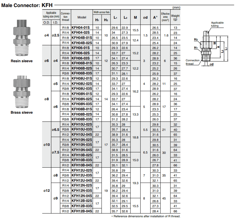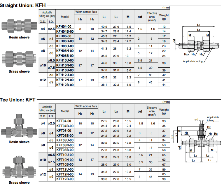 Đầu nối nhanh hệ mét SMC KQ2 series có sẵn với nhiều kích thước, kiểu dáng và loại ren khác nhau