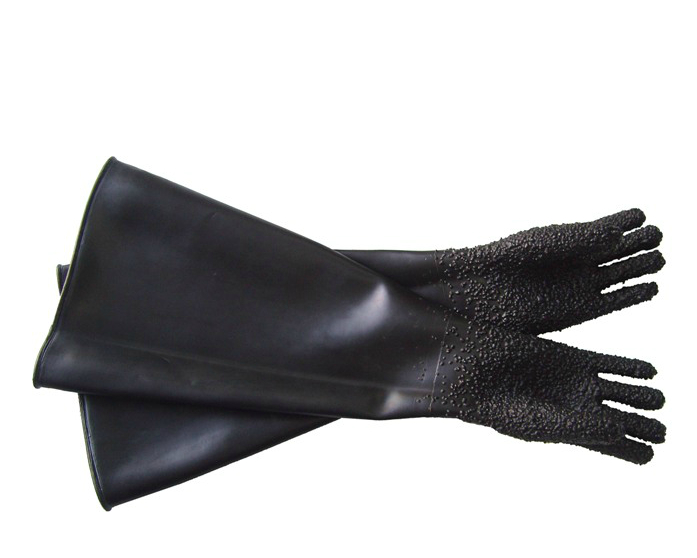 55cm găng tay cao su bắn cát (phần cuff thường được sử dụng kết hợp với nổ mìn), sự thật 18-20cm đường kính cuff.Găng tay phun cát phun bi (Sandblasting) là một chiếc găng tay cao su chịu mài mòn cao với một quy trình sản xuất đặc biệt, kháng dày, chịu mài, áp lực cao. Sandblasting thời gian sử dụng găng tay hơn găng tay thường xuyên, tay nổ.bắn cát thông thường của các kích thước găng tay: dài 65cm, đường kính phẳng là 30mm. Thông thường độ dài70cm xung quanh.